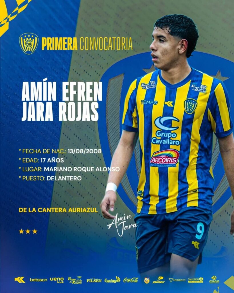 Una de las novedades en la lista es la convocatoria del juvenil Amín Jara, roquealonseño de 17 años, surgido de la cantera auriazul. El atacante podría tener su debut en la Primera División en el compromiso de esta noche.
