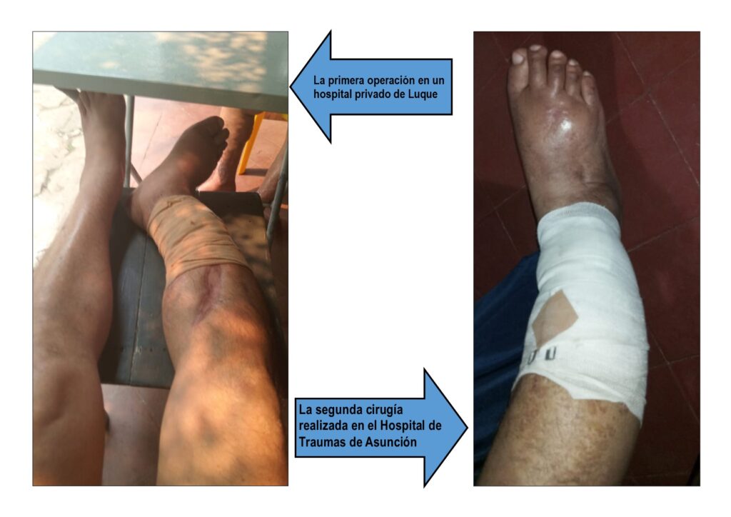 Allí empezó su peor experiencia. “Después de gastar una fortuna, mi cirugía salió mal. No me hicieron bien la operación. Mi pie quedó totalmente encorvado, horrible, inclinado, desviado”, lamenta. Ese error –médico– lo obligó a sobrellevar un tratamiento de un año y medio, tras lo cual debió someterse a una segunda cirugía en el Hospital de Traumas de Asunción.