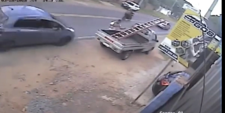 Según se observa en las imágenes, el joven descendía de la carrocería de su camioneta luego de acomodar una escalera que transportaba en la parte trasera del vehículo. En ese instante, un automóvil que transitaba parcialmente sobre la banquina lo embistió violentamente.