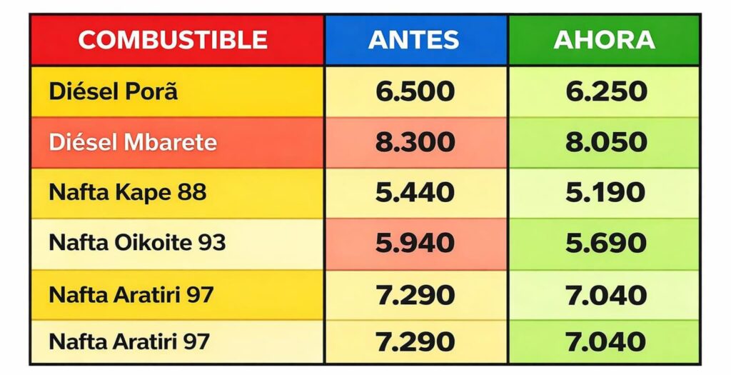 El país amaneció este miércoles con la noticia de una reducción de G. 250 en el precio de todos los combustibles comercializados por Petropar, marcando la primera baja del año 2026. Conozca los nuevos valores vigentes desde hoy, 28 de enero.